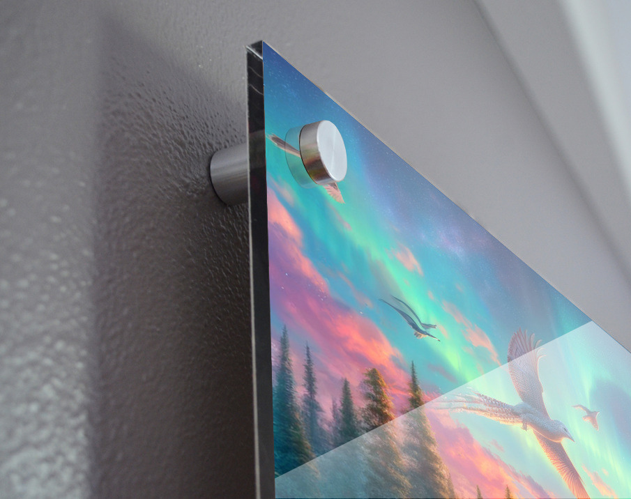 Fine Art made from a Premium polished, best-in-class, 99.9% optically pure acrylic and the latest Flatbed printing craftmanship.